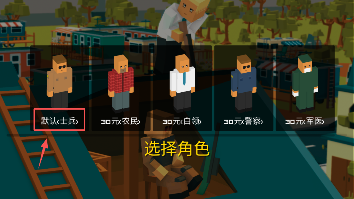 1、选择角色,点击“默认:士兵”或其他角色,花费30元解锁。